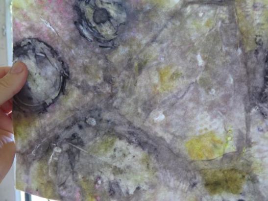 An unfolded print after the botanical pressure printing process